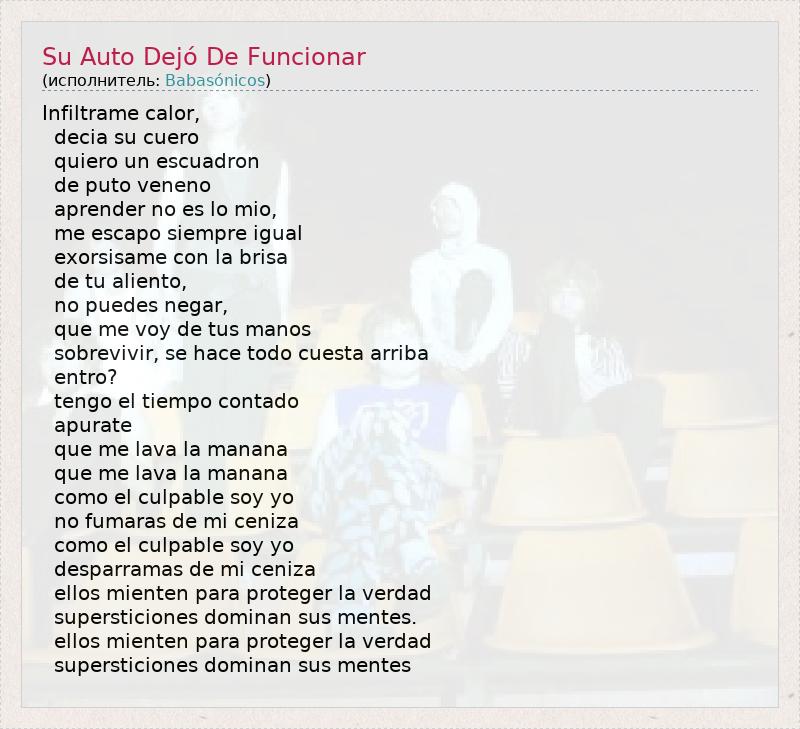 ГлавнаяИсполнителиBabasónicosSu Auto Dejó De Funcionar
