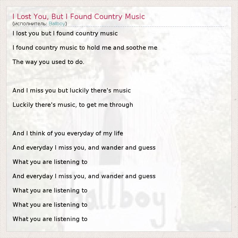 ГлавнаяИсполнителиBallboyI Lost You, But I Found Country Music