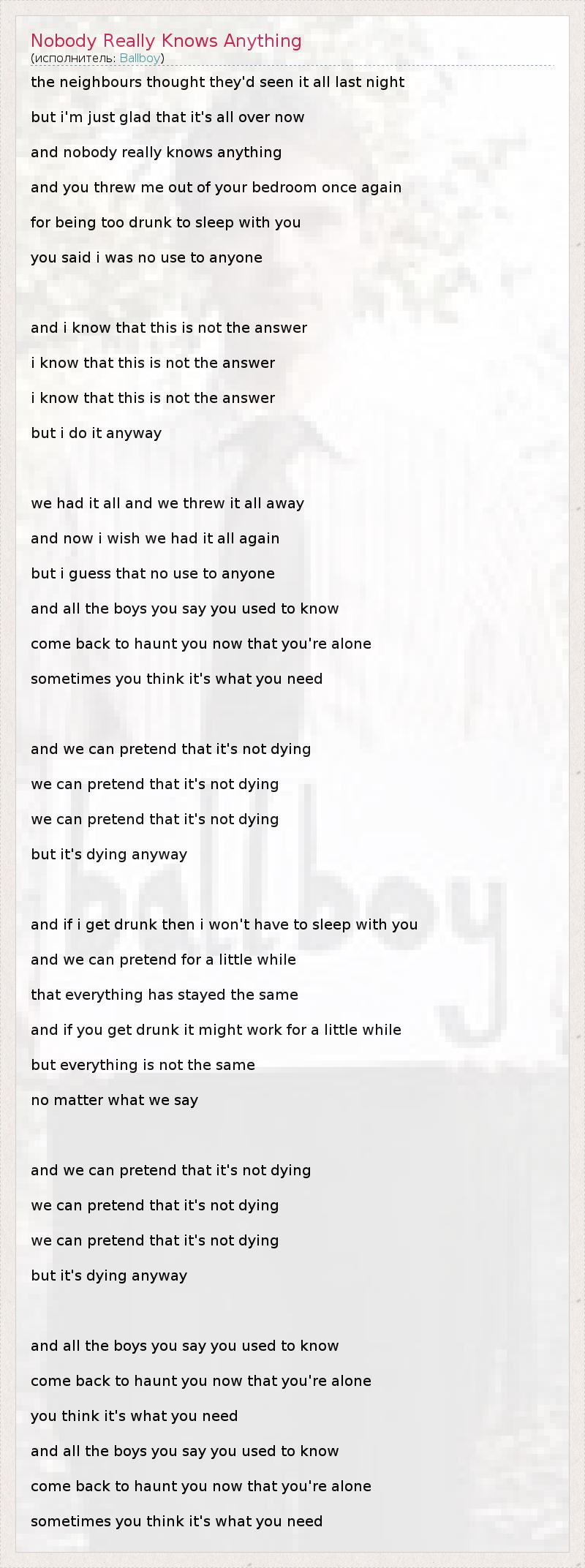 ГлавнаяИсполнителиBallboyNobody Really Knows Anything