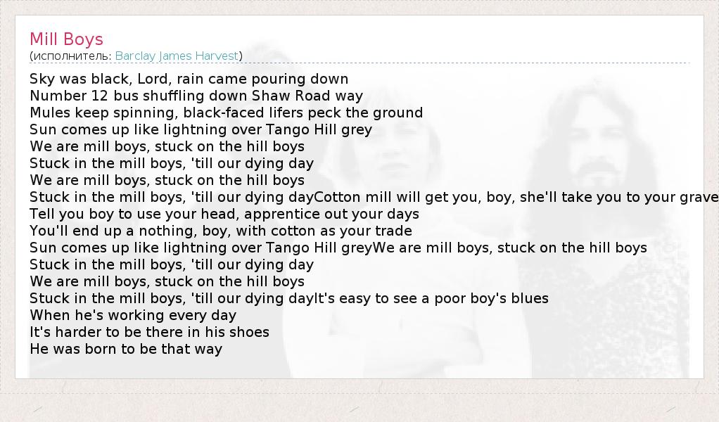А как ты думаешь, о чем песня "Mill Boys" ?