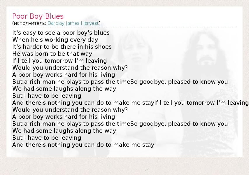 А как ты думаешь, о чем песня "Poor Boy Blues" ?