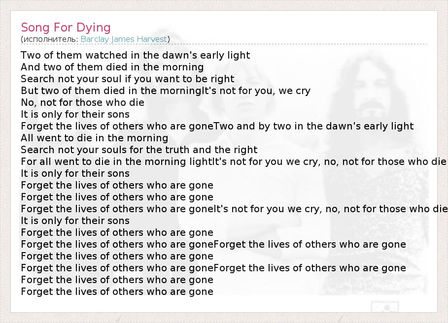 А как ты думаешь, о чем песня "Song For Dying" ?