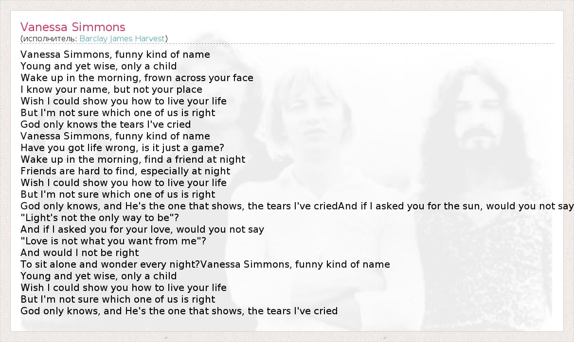 А как ты думаешь, о чем песня "Vanessa Simmons" ?