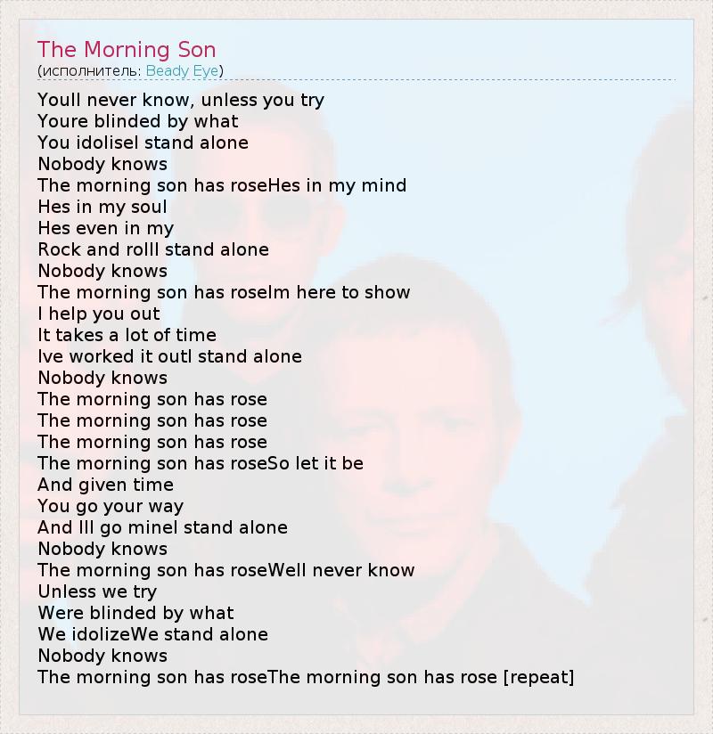 А как ты думаешь, о чем песня "The Morning Son" ?