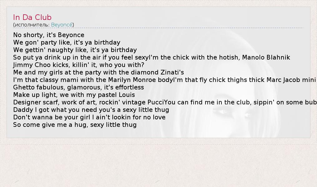 А как ты думаешь, о чем песня "In Da Club" ?
