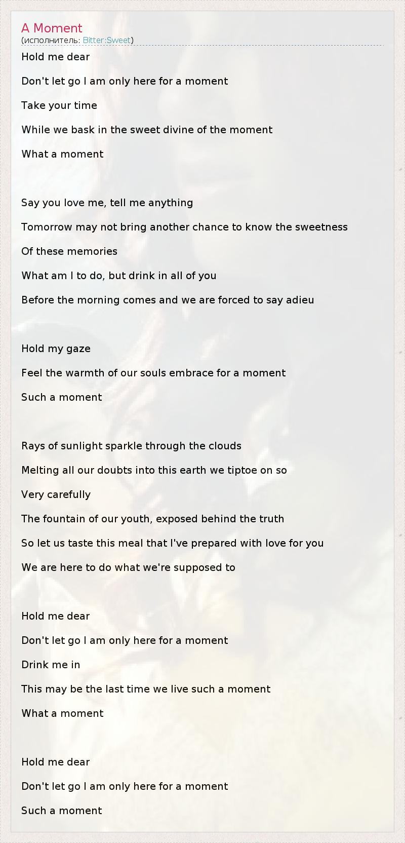 Это интересно:Bitter:Sweet - американский дуэт, состоящий из Shana Halligan, которая отвечает за вокал, лирику и пишущую песни, и мультиинструменталиста Kiran Shahani, который продюссирует и также пишет песни. Играют смесь электроники, трип-хопа и джаза под прекрасный чувственный вокал. Под эту музыку можно и танцевать и расслабляться.