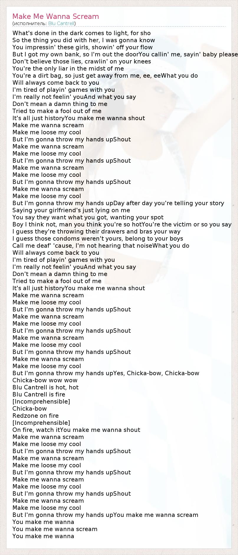 А как ты думаешь, о чем песня "Make Me Wanna Scream" ?