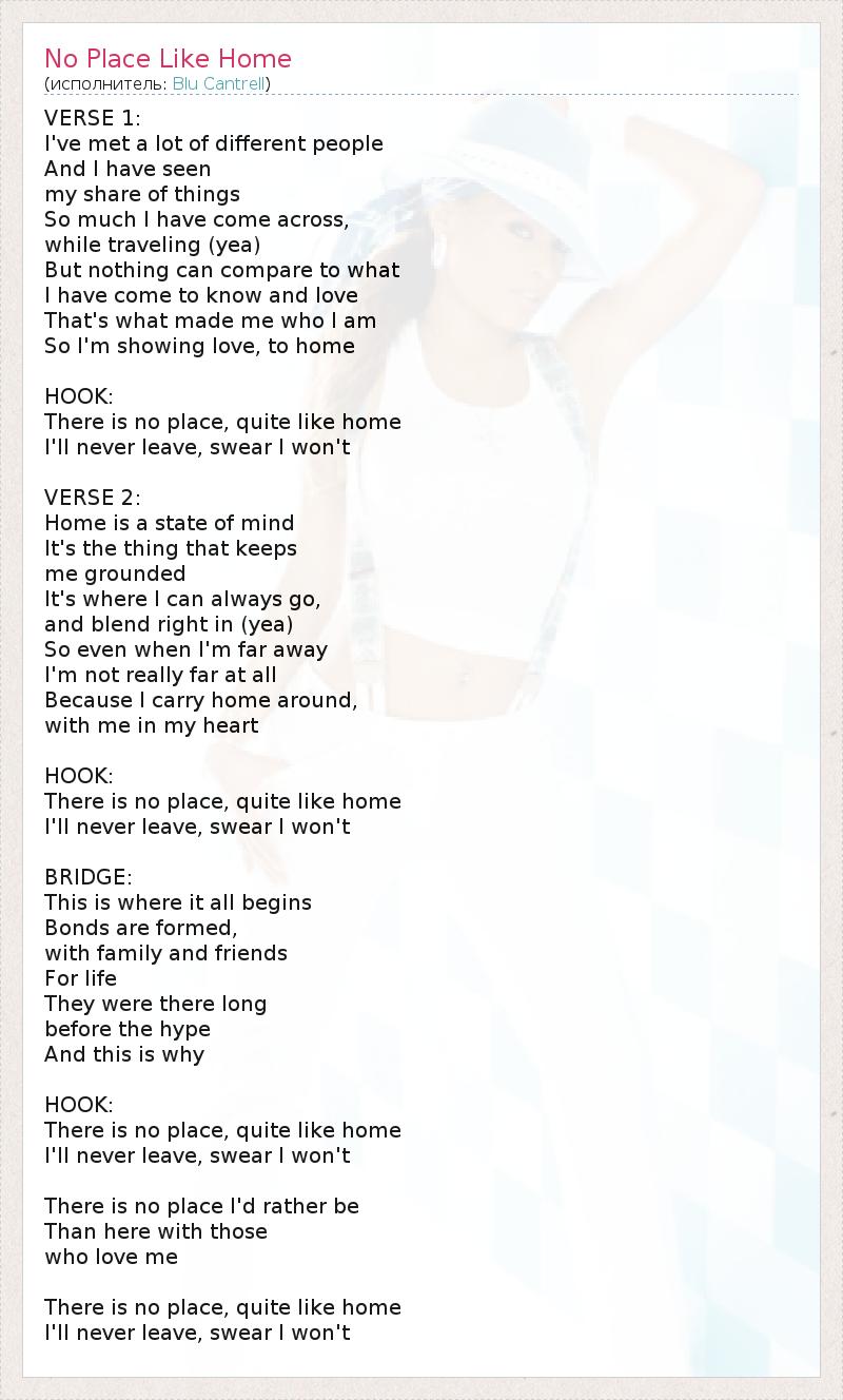 А как ты думаешь, о чем песня "No Place Like Home" ?