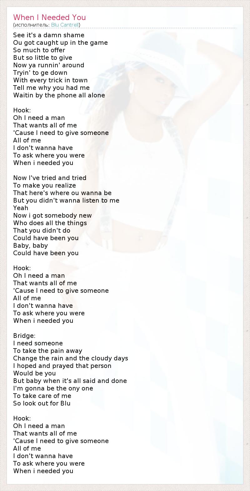 А как ты думаешь, о чем песня "When I Needed You" ?