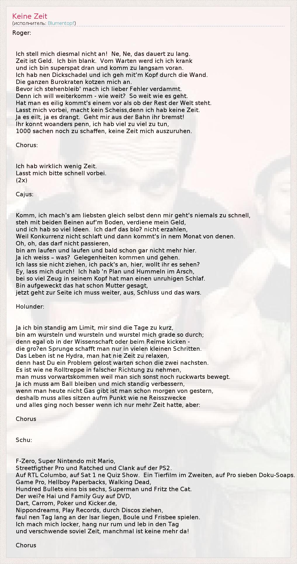 А как ты думаешь, о чем песня "Keine Zeit" ?