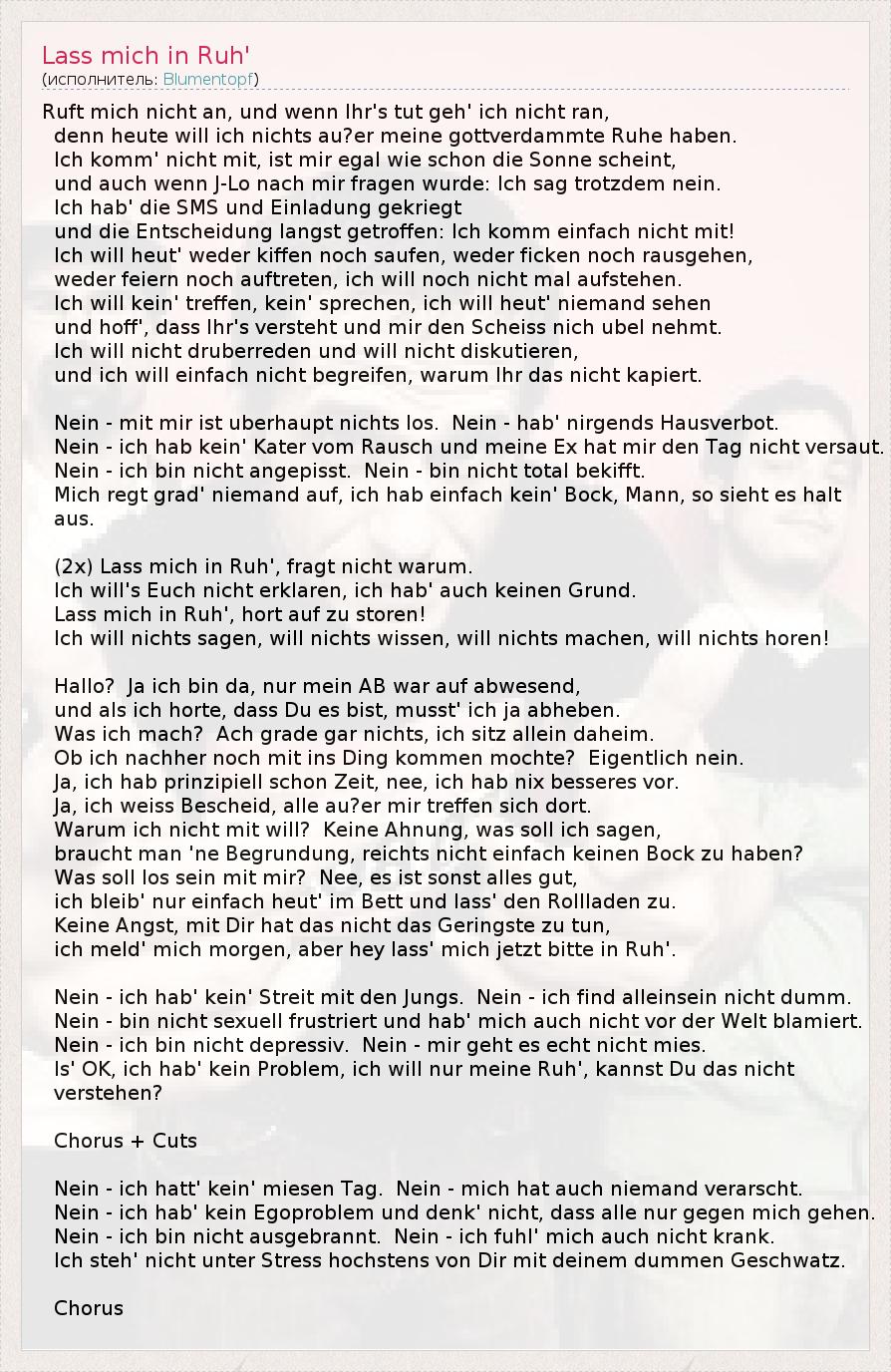 А как ты думаешь, о чем песня "Lass mich in Ruh'" ?