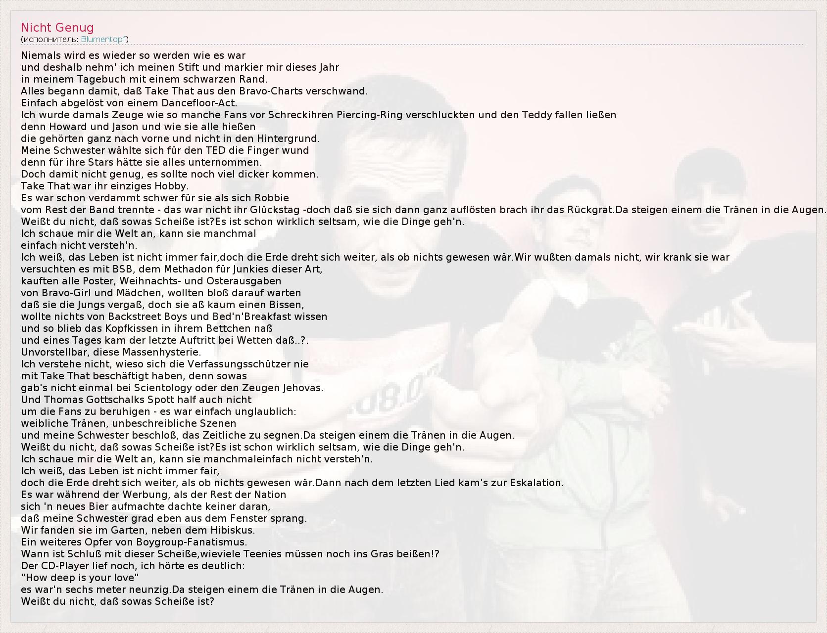 А как ты думаешь, о чем песня "Nicht Genug" ?