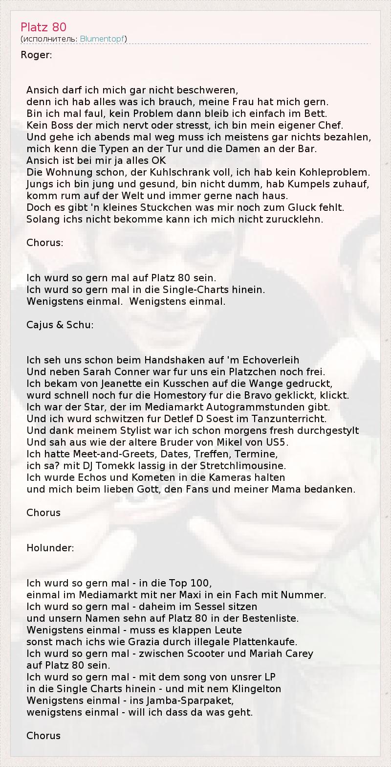 А как ты думаешь, о чем песня "Platz 80" ?