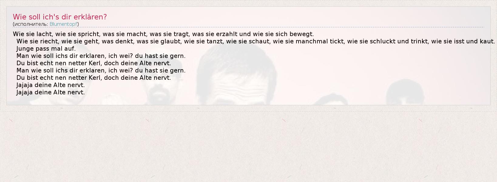ГлавнаяИсполнителиBlumentopfWie soll ich's dir erklären?