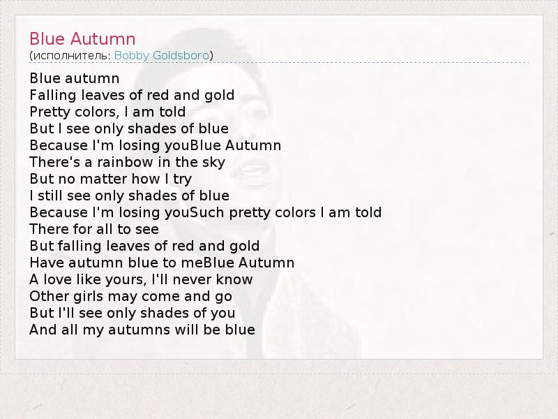 А как ты думаешь, о чем песня "Blue Autumn" ?
