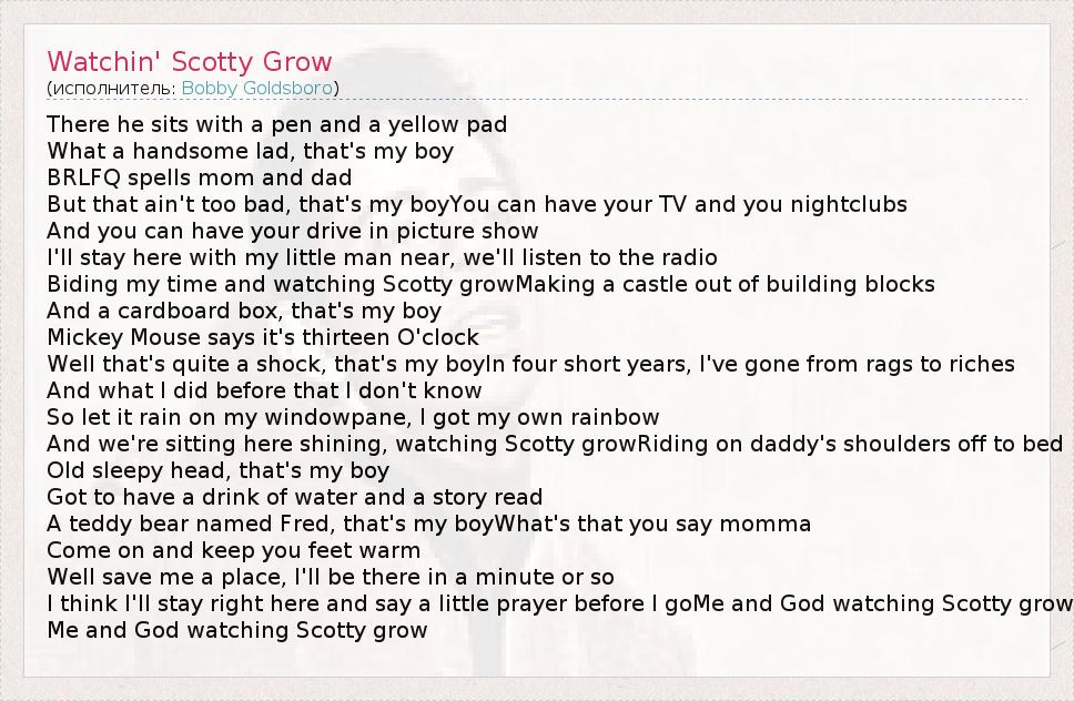 А как ты думаешь, о чем песня "Watchin' Scotty Grow" ?