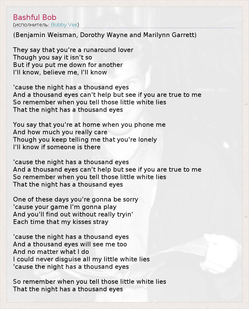 А как ты думаешь, о чем песня "Bashful Bob" ?