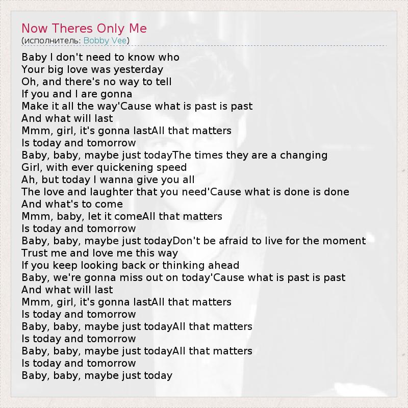 А как ты думаешь, о чем песня "Now Theres Only Me" ?