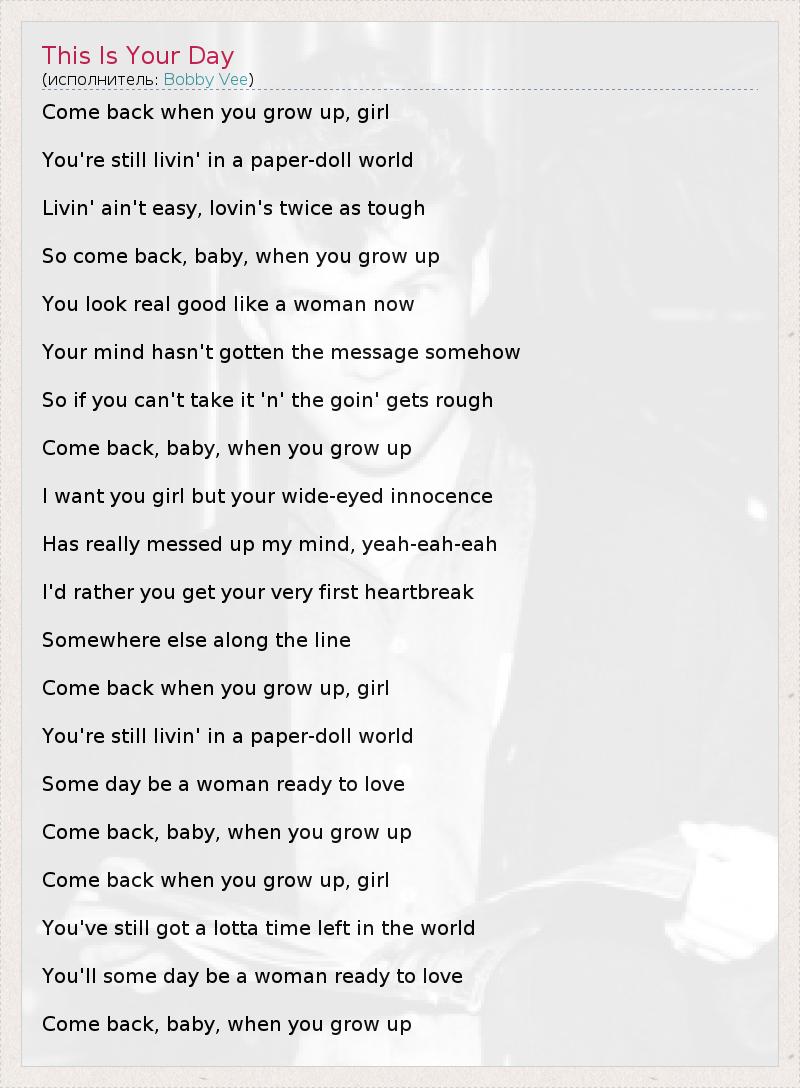 А как ты думаешь, о чем песня "This Is Your Day" ?