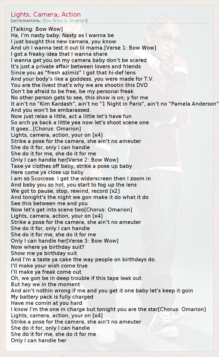А как ты думаешь, о чем песня "Lights, Camera, Action" ?
