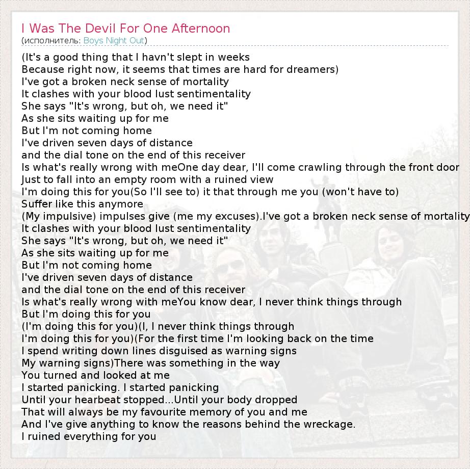 А как ты думаешь, о чем песня "I Was The Devil For One Afternoon" ?