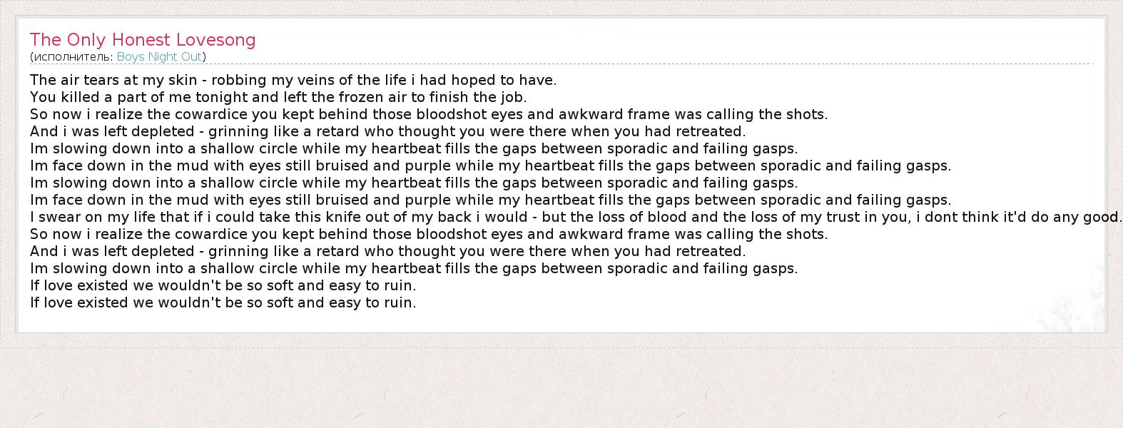 А как ты думаешь, о чем песня "The Only Honest Lovesong" ?