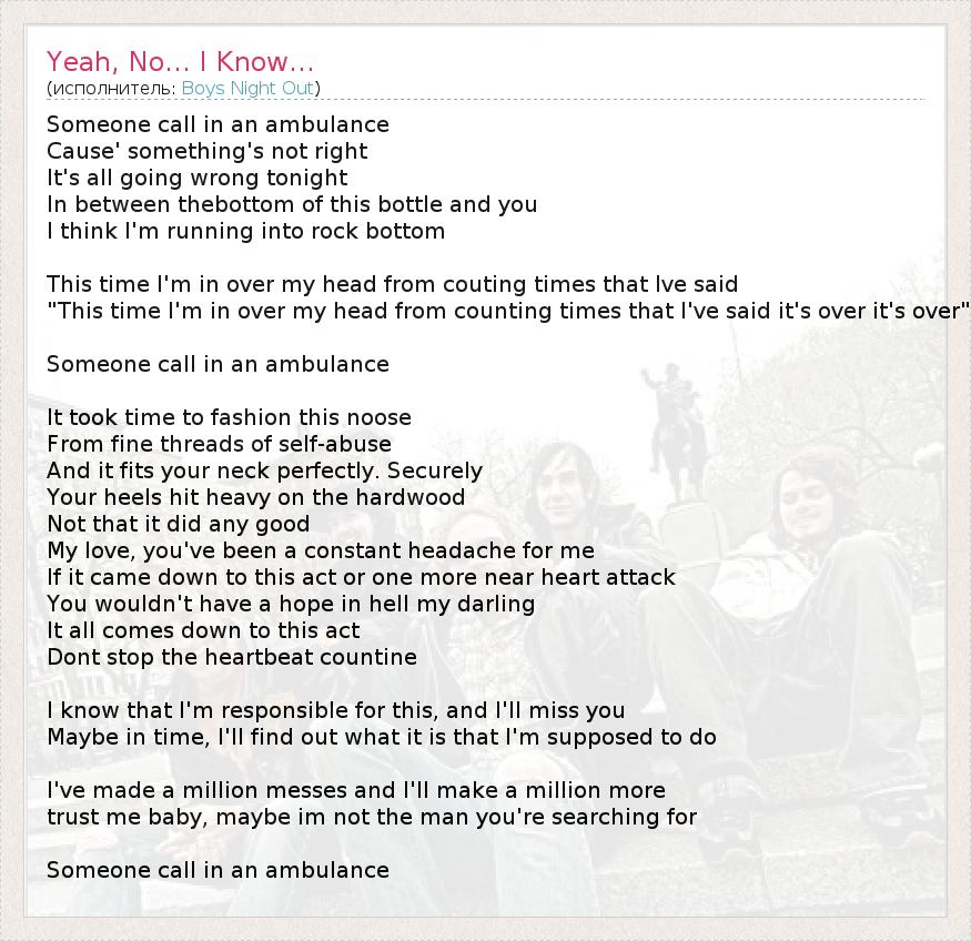 А как ты думаешь, о чем песня "Yeah, No... I Know..." ?