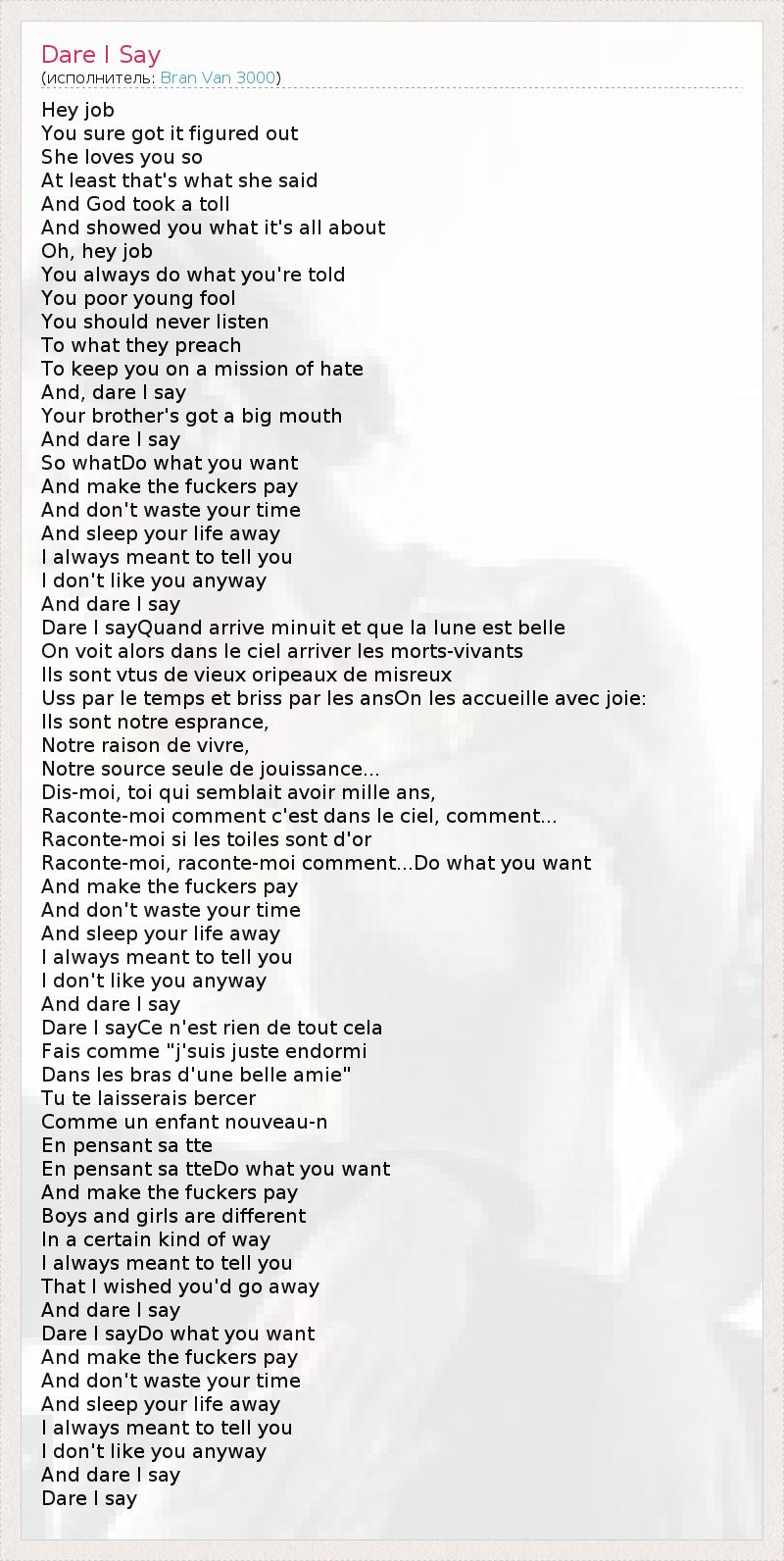 А как ты думаешь, о чем песня "Dare I Say" ?