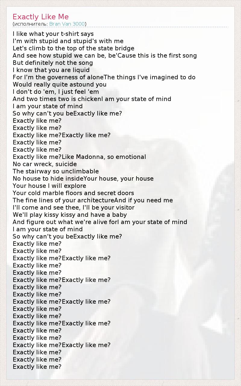 А как ты думаешь, о чем песня "Exactly Like Me" ?
