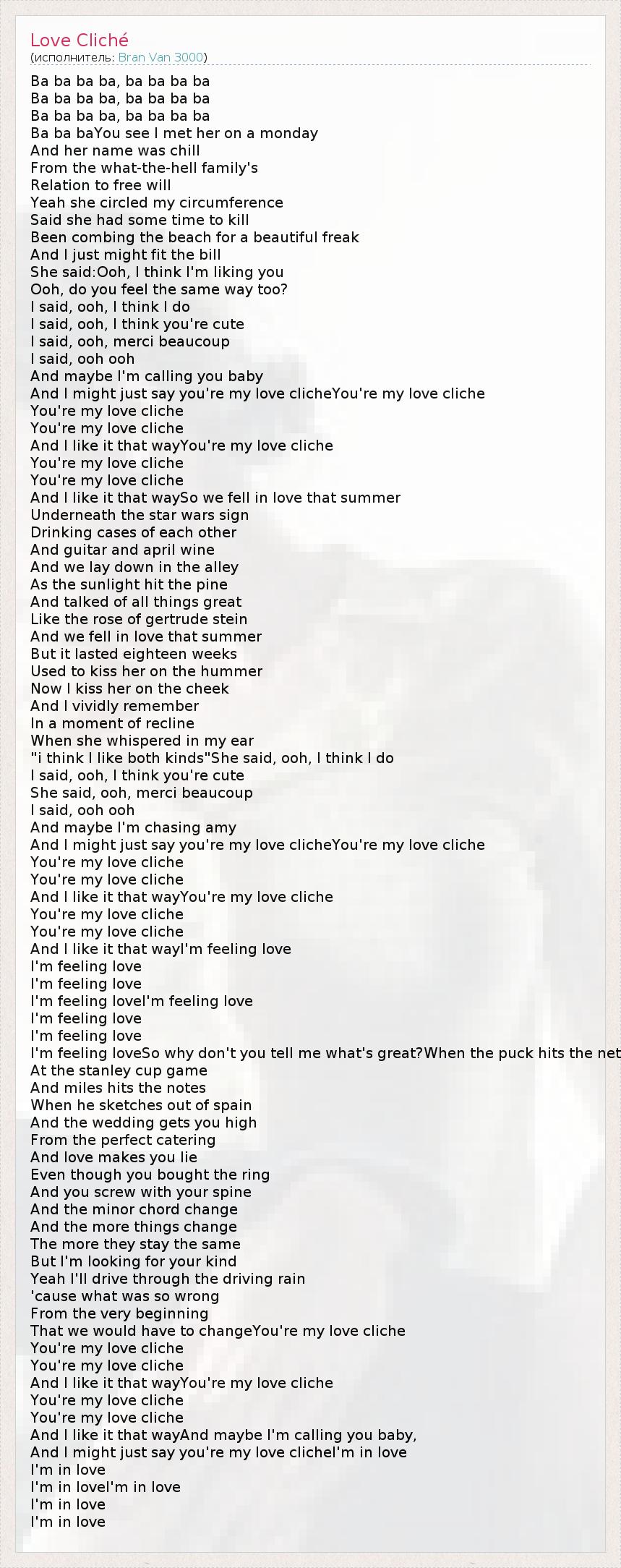 А как ты думаешь, о чем песня "Love Cliché" ?