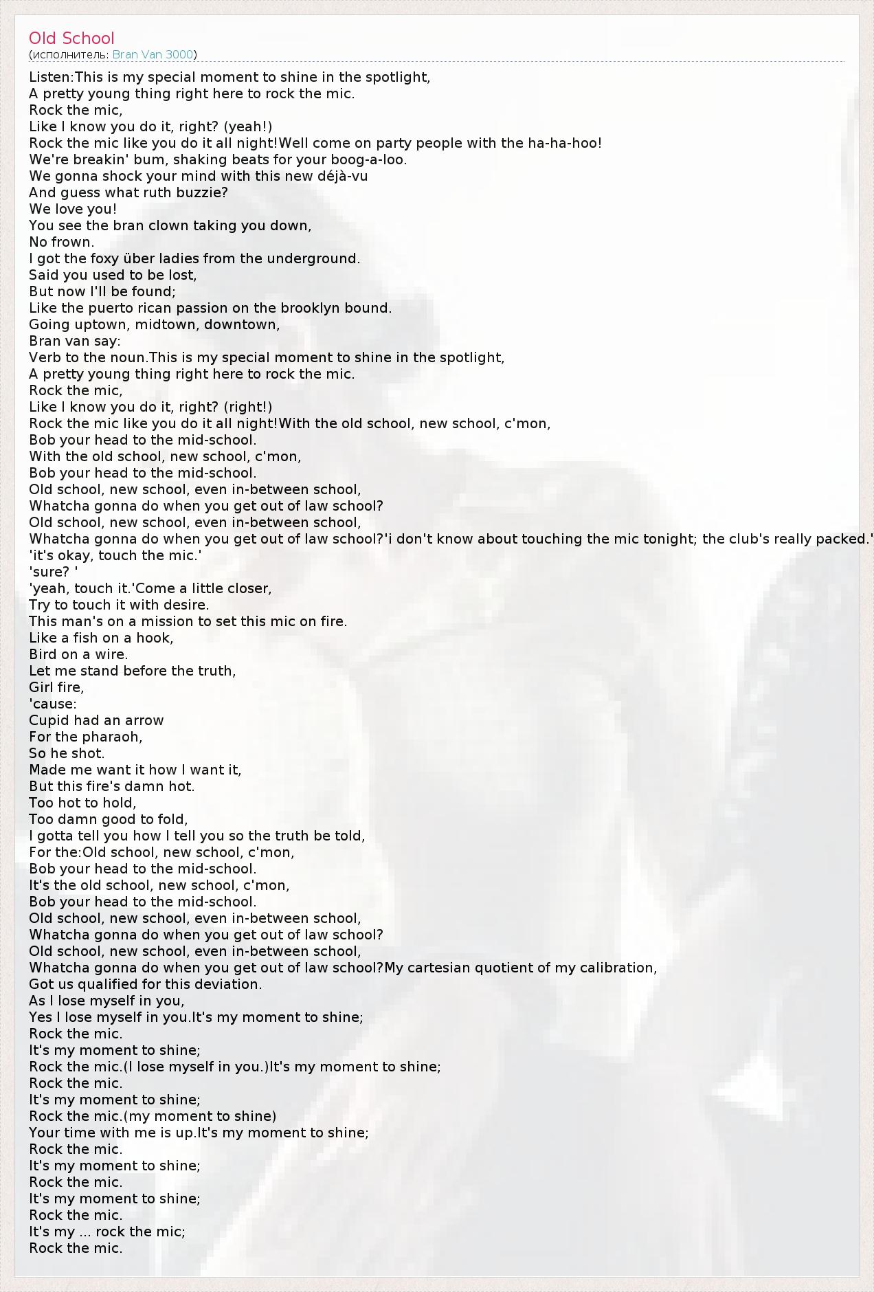 Rock the mic like you do it all night!With the old school, new school, c'mon,