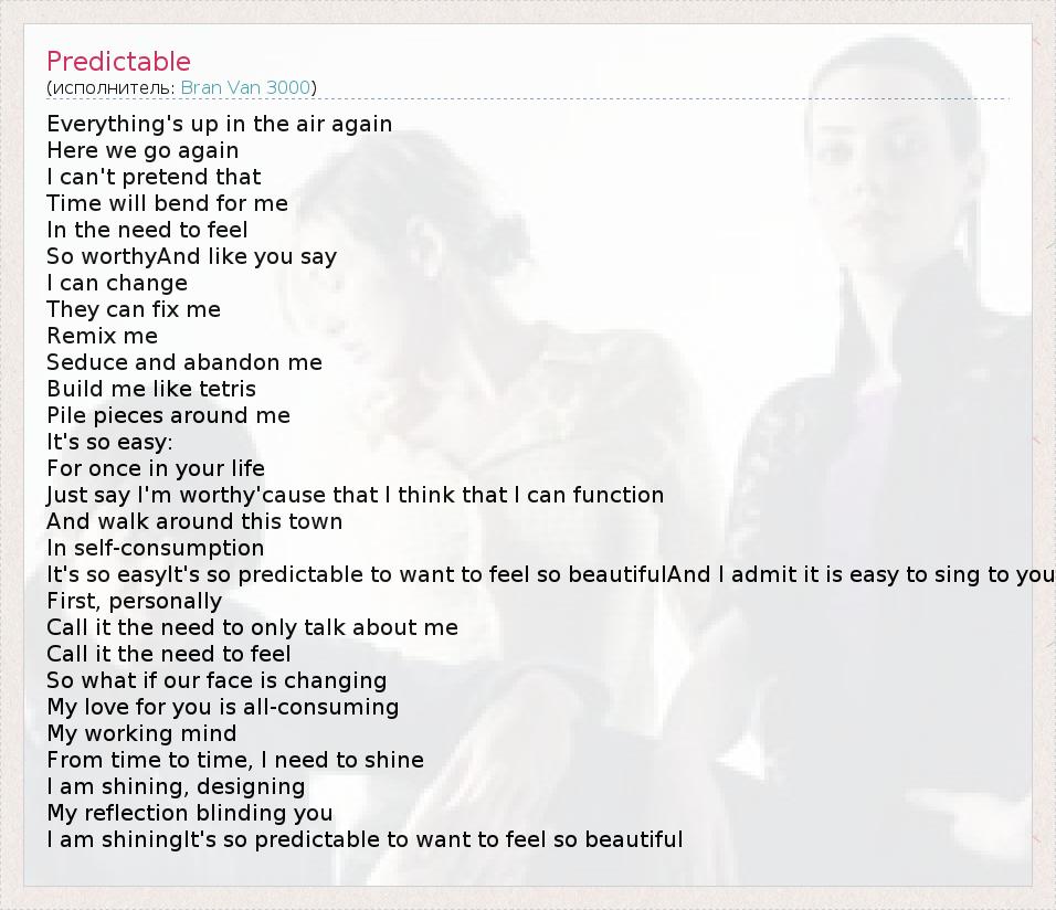 It's so easyIt's so predictable to want to feel so beautifulAnd I admit it is easy to sing to you