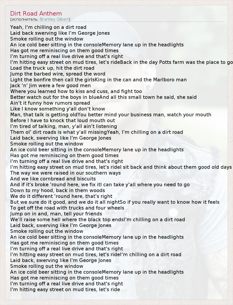 А как ты думаешь, о чем песня "Dirt Road Anthem" ?