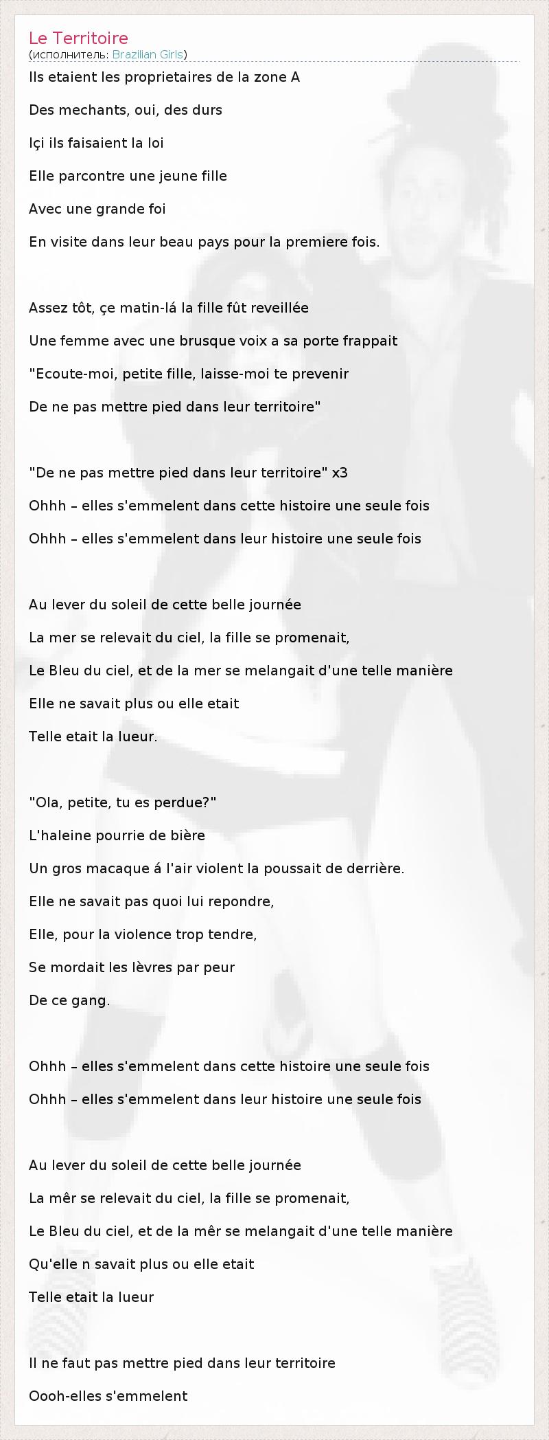 А как ты думаешь, о чем песня "Le Territoire" ?