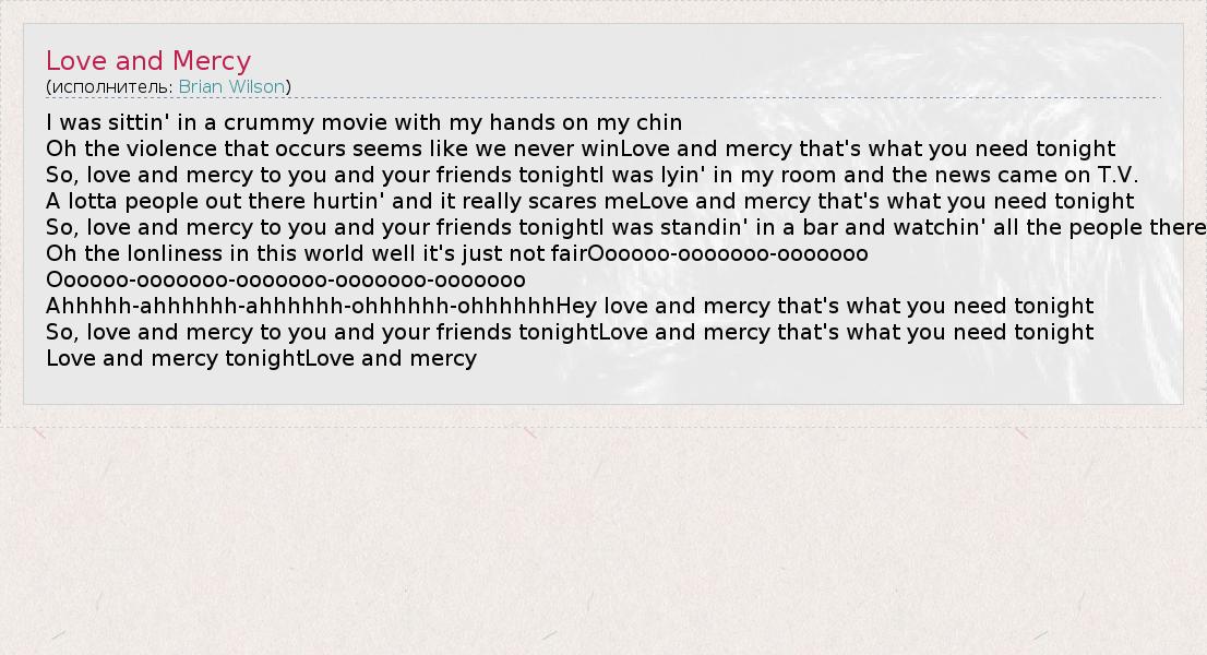 А как ты думаешь, о чем песня "Love and Mercy" ?