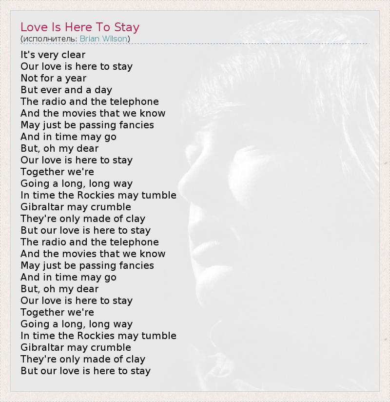А как ты думаешь, о чем песня "Love Is Here To Stay" ?