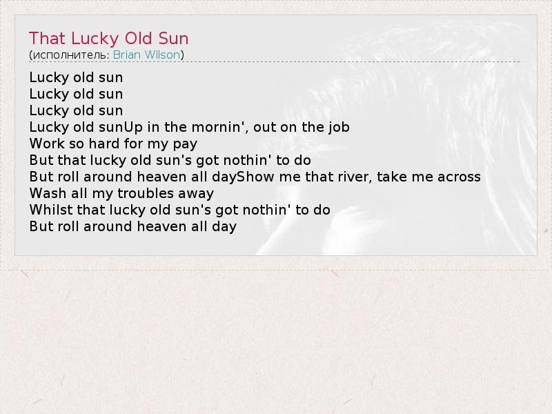 А как ты думаешь, о чем песня "That Lucky Old Sun" ?