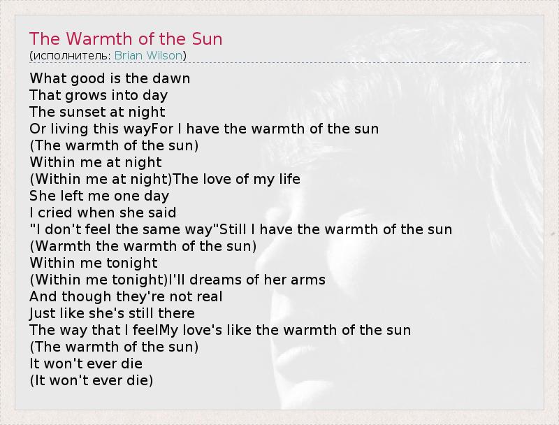 А как ты думаешь, о чем песня "The Warmth of the Sun" ?