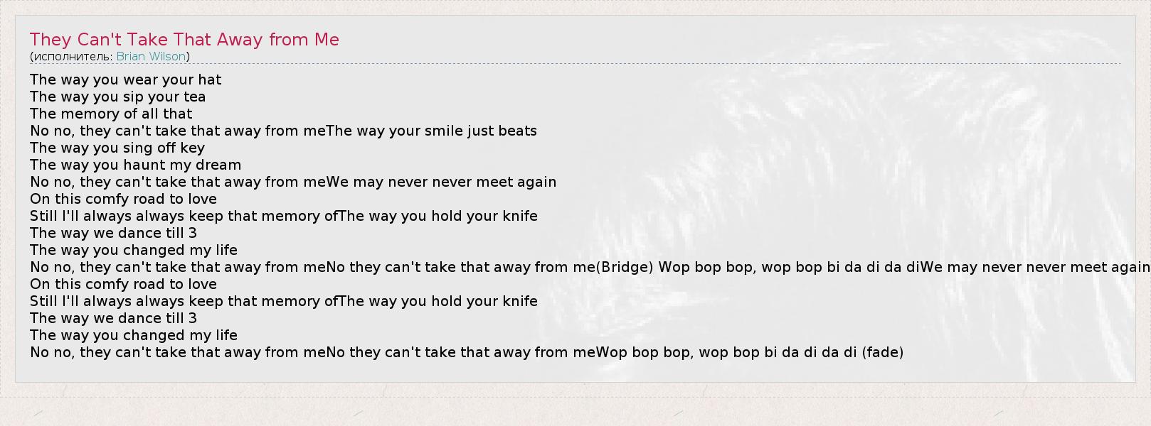 ГлавнаяИсполнителиBrian WilsonThey Can't Take That Away from Me