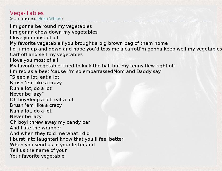 А как ты думаешь, о чем песня "Vega-Tables" ?