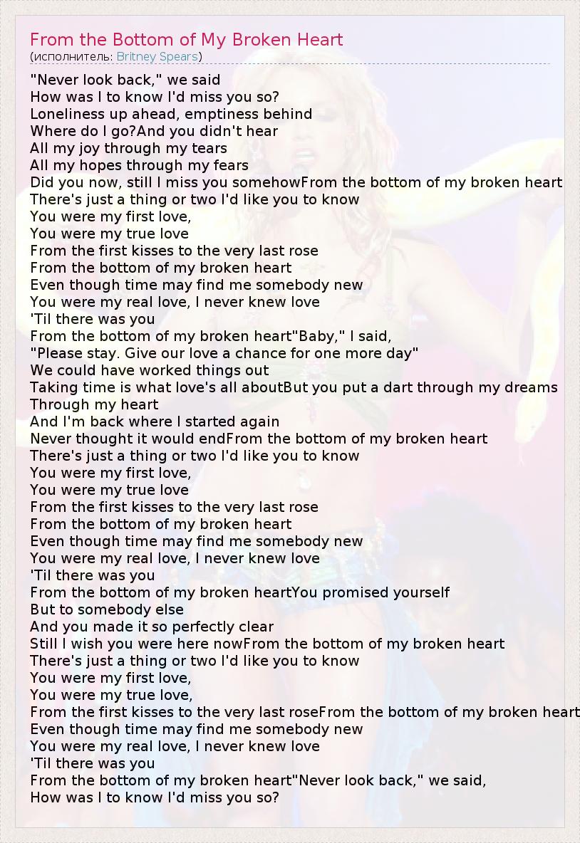 А как ты думаешь, о чем песня "From the Bottom of My Broken Heart" ?
