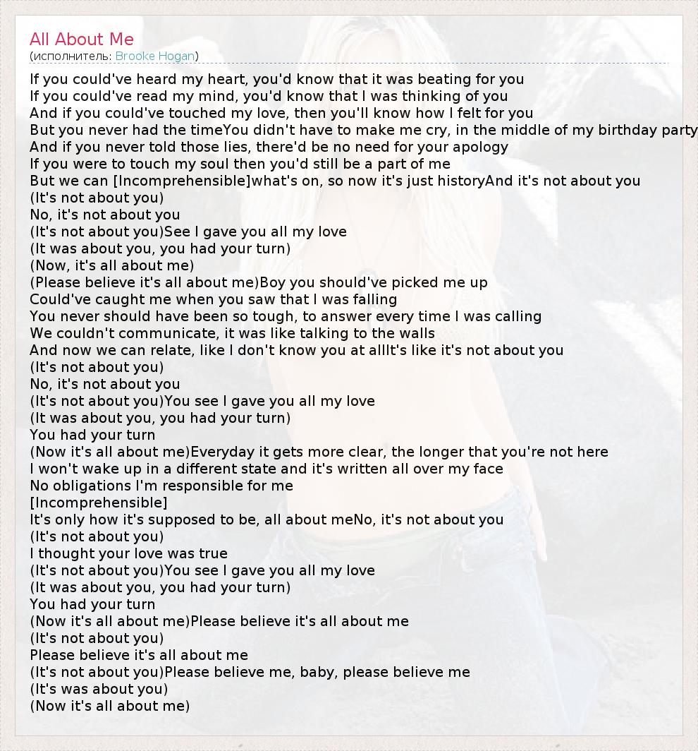 (Now it's all about me)Everyday it gets more clear, the longer that you're not here
