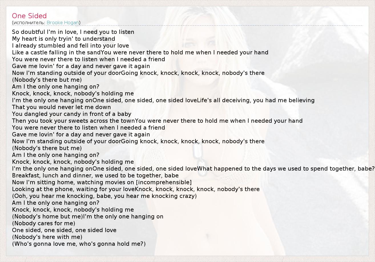 I'm the only one hanging onOne sided, one sided, one sided loveLife's all deceiving, you had me believing