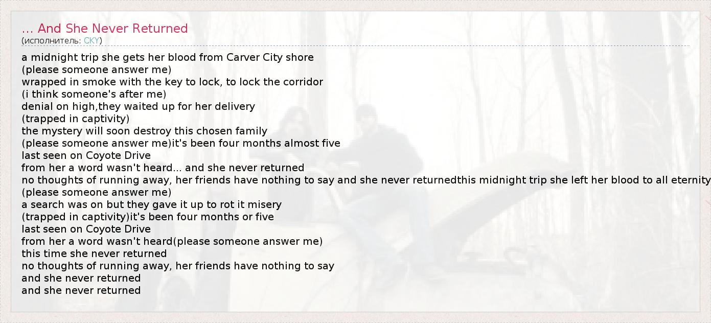ГлавнаяИсполнителиCKY... And She Never Returned