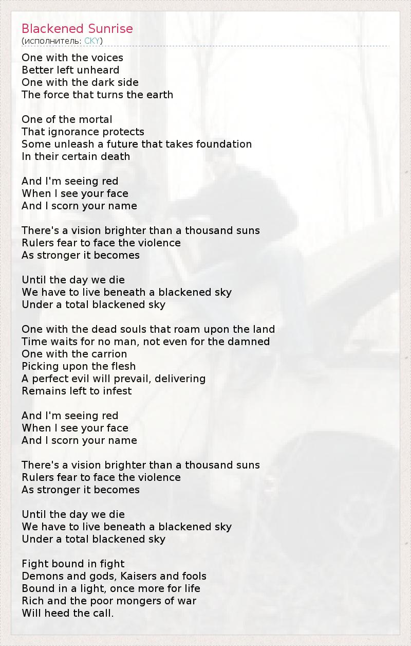 А как ты думаешь, о чем песня "Blackened Sunrise" ?