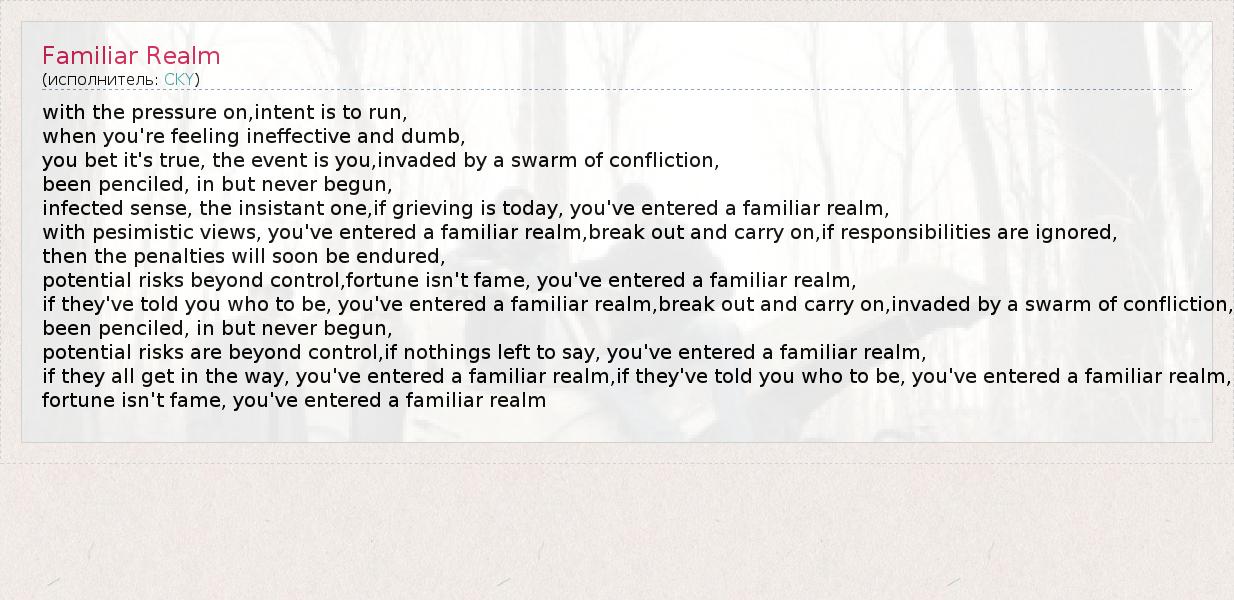 А как ты думаешь, о чем песня "Familiar Realm" ?