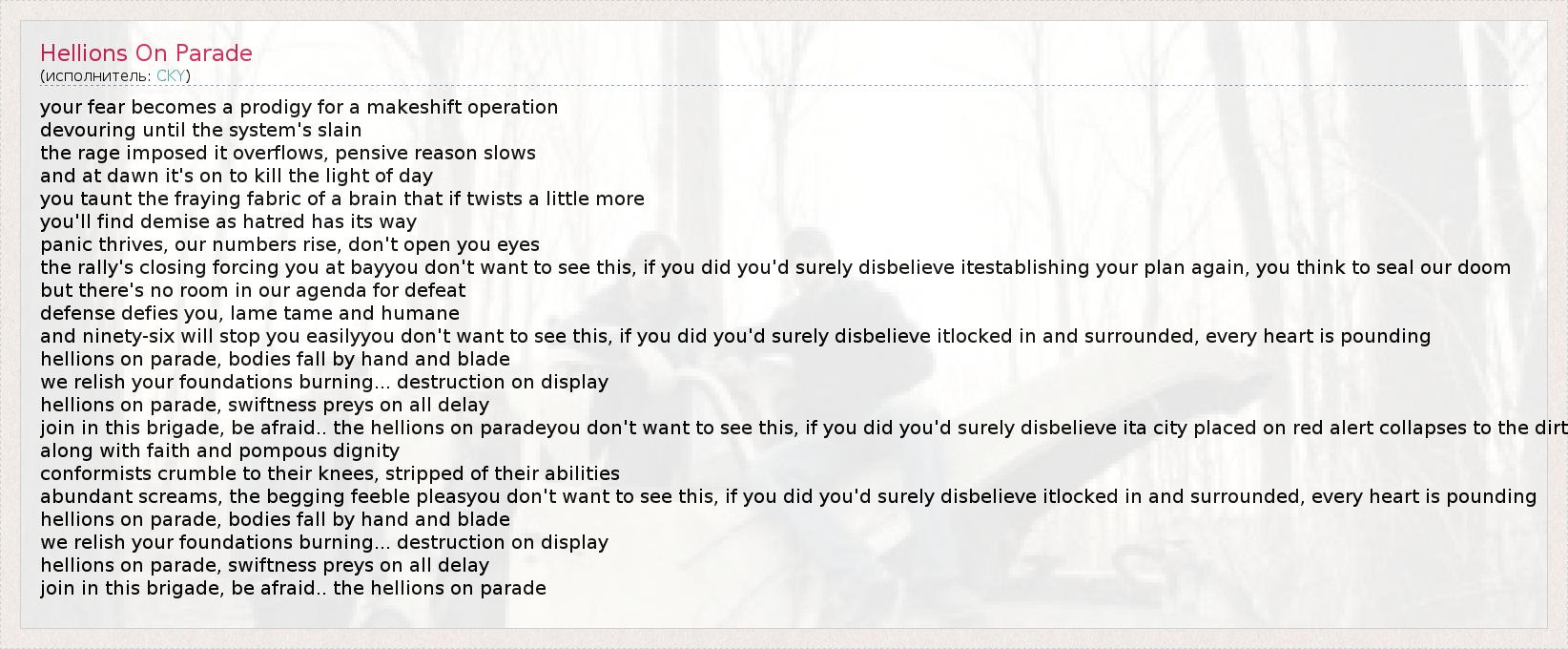 А как ты думаешь, о чем песня "Hellions On Parade" ?
