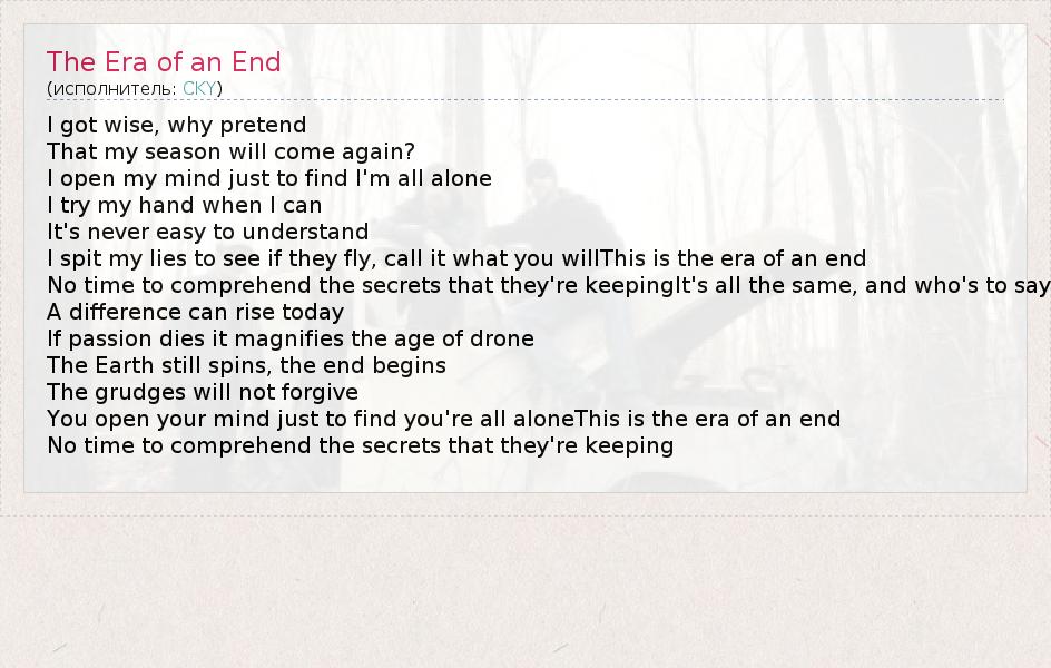 А как ты думаешь, о чем песня "The Era of an End" ?