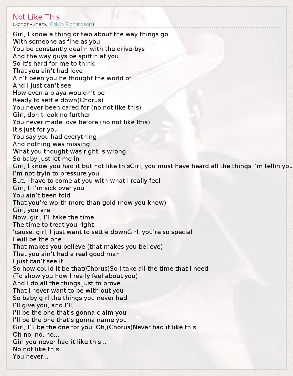 Girl, I know you had it but not like thisGirl, you must have heard all the things I'm tellin you