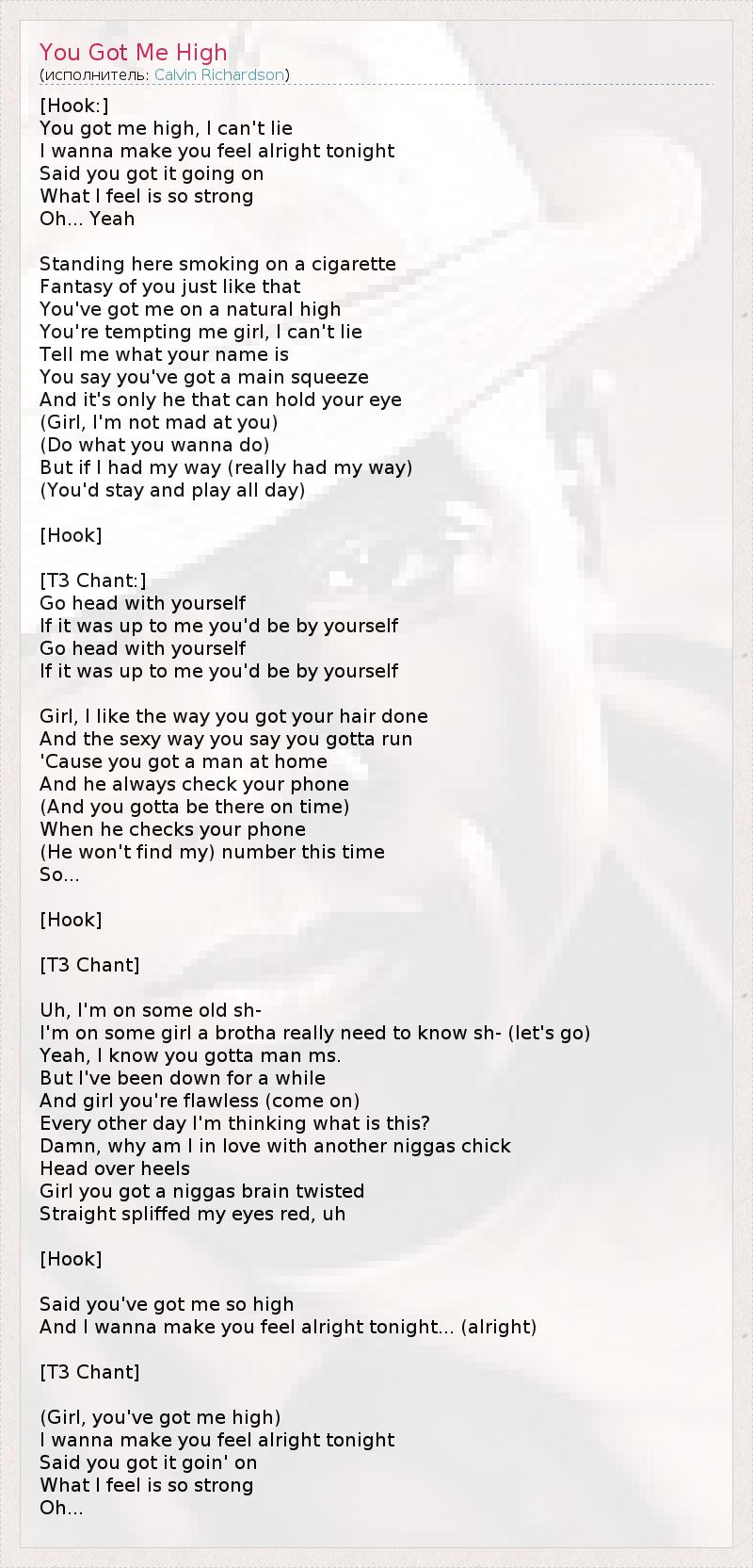 You got me high, I can't lie